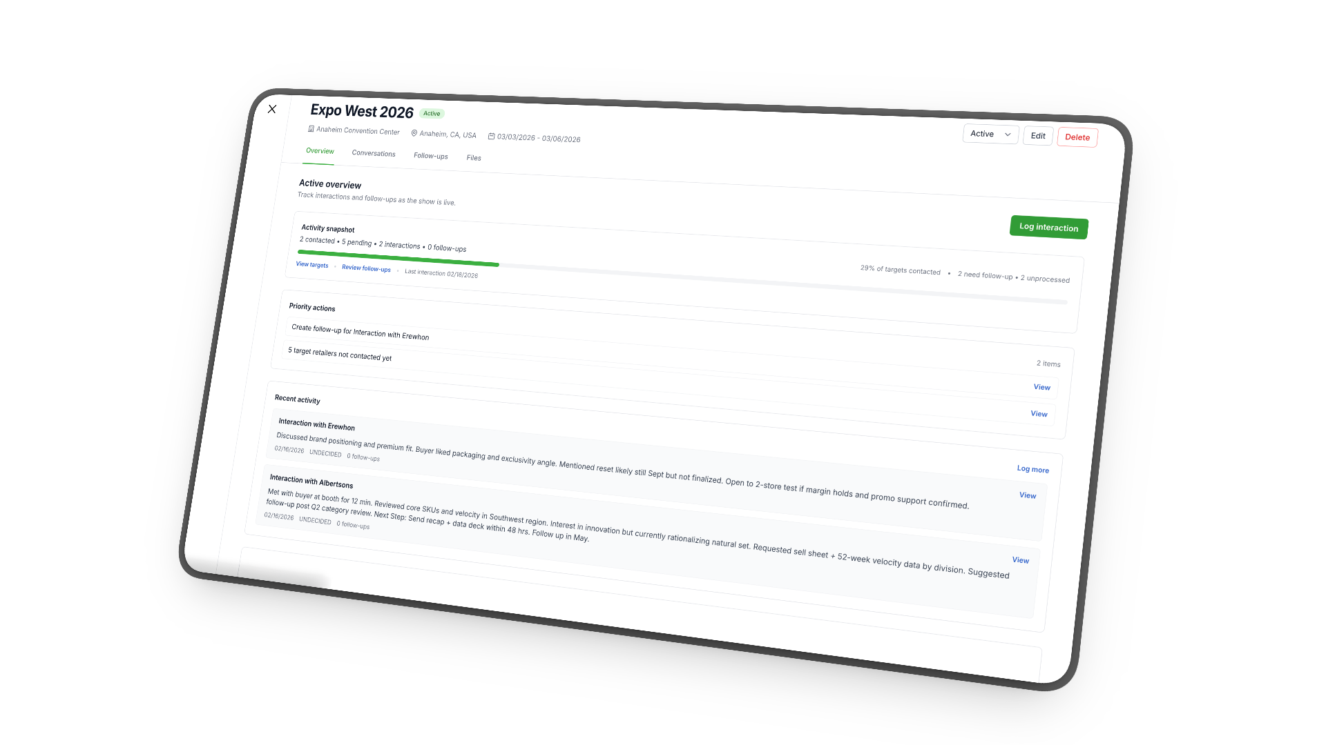 You’ll have access to the platform for 30 days after Expo West 2026 for free. Upgrade for ongoing access.